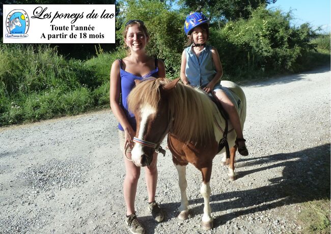 Promenades à petit poney autour du Lac de Pelleautier, poney tenu en main par un parent, à partir de 18 mois.